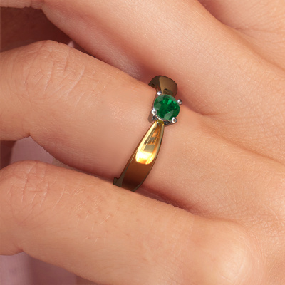 The ring shown above is called the Nichole. We call this a solitaire ring because it contains a single gemstone. The engagement ring is made in 14 Carat gold and has a round emerald of 4.2 mm. This extraordinary fantasy gold solitaire engagement ring is set with a beautiful round emerald to add sparkle to your proposal. The open prong setting allows light to strike the gemstone from various angles. Did you know a diamond represents everlasting love and fidelity? This makes it a perfect centrepiece. Our goldsmith carefully positions the gemstone of your choosing high on top of the ring, which makes it stand out. Each piece of jewellery is made just for you by our master goldsmiths in our own studio.After receiving your order, our goldsmiths will passionately start the creative process of making your engagement ring in our own studio. Because we don't have a big stockpile, these costs will not be passed on to you. Our pricing is proof of that! We offer top quality jewels at lowest price, guaranteed.Do you have a specific ring in mind? One you came across somewhere. Please feel free to tell us your wishes and we will turn your design into a unique engagement ring. You can follow the development of your ring design because we use 3D drawings. This gives you a realistic preview of your design. We will gladly send you a non-binding offer, based on a fair price/ quality ratio. It will amaze you.To make it easier for you, we offer a 30 day return policy. Check our terms and conditions.