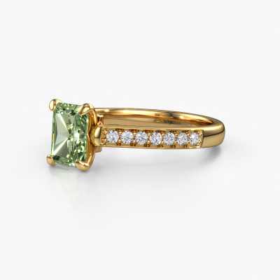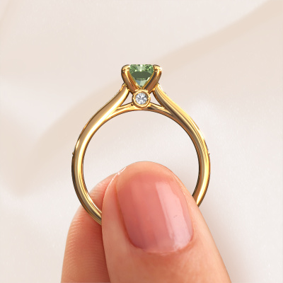 This 14 Carat gold ring is called Valorie rad 2 and is set with 7x5 mm green lab grown diamond. Are you looking for a fantasy gold engagement ring which you can customize to your own liking? This fantasy engagement ring is set with green lab grown diamond which is carefully selected for this specific ring in order to create the best effect. Our expert goldsmith will create your ring in our own crafting studio, where the green lab grown diamond will be set with great care. The ring will then be polished till it shines perfectly. Nothing but the best for the love of your life! The great thing about our online tool is, that you can compile your own jewellery into a unique, personalized piece. Each piece of jewellery is made with passion and love by one of our master goldsmiths.Because we design and deliver our own rings, we can offer you a engagement ring at a price you won't find anywhere else. A ring is made to order, which helps prevent excess supplies, so we can make you a great price offer. We understand it feels risky, buying your engagement ring online, but we will gladly assist in the designing process, taking your budget into consideration.Do you have a specific ring in mind? One you came across somewhere. Please feel free to tell us your wishes and we will turn your design into a unique engagement ring. You can follow the development of your ring design because we use 3D drawings. This gives you a realistic preview of your design. We will gladly send you a non-binding offer, based on a fair price/ quality ratio. It will amaze you.To make it easier for you, we offer a 30 day return policy. Check our terms and conditions.