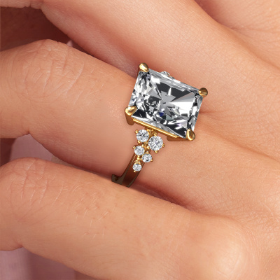 This 14 Carat gold ring is called Royce RAD and is set with 5.316 crt lab grown diamond. Are you looking for a fantasy gold engagement ring which you can customize to your own liking? This fantasy engagement ring is set with lab grown diamond which is carefully selected for this specific ring in order to create the best effect. Our expert goldsmith will create your ring in our own crafting studio, where the lab grown diamond will be set with great care. The ring will then be polished till it shines perfectly. Nothing but the best for the love of your life! The great thing about our online tool is, that you can compile your own jewellery into a unique, personalized piece. Each piece of jewellery is unique in every way! Simply customize to your liking,Because we design and deliver our own rings, we can offer you a engagement ring at a price you won't find anywhere else. A ring is made to order, which helps prevent excess supplies, so we can make you a great price offer. We understand it feels risky, buying your engagement ring online, but we will gladly assist in the designing process, taking your budget into consideration.Have you found a specific engagement ring somewhere which you would like to give to your loved one? Please feel free to express your wishes to our jewel designers because we would be honoured to turn your design into a fantasy engagement ring. You can follow the development of your ring design because we use 3D drawings. This gives you a realistic preview of how your design will look. You can also preorder a dummy. A dummy is a plastic ring, which can be shaped according your ring design. You can try it on and check if its width and size are suitable for you. We will gladly send you a non-binding offer, based on a fair price/ quality ratio. It will amaze you, considering the quality of the ring and gemstones.To make it easier for you, we offer a 30 day return policy. Check our terms and conditions.