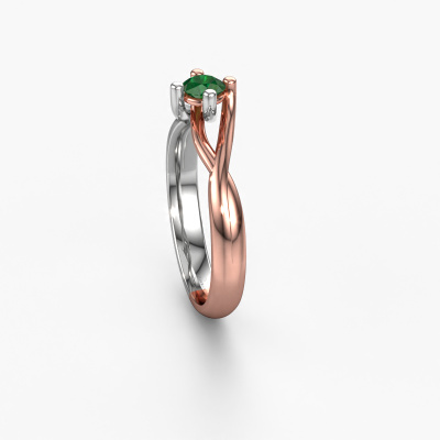 This 14 Carat rose gold ring is called Paulien and is set with 4 mm emerald. Are you looking for a fantasy rose gold engagement ring which you can customize to your own liking? This fantasy engagement ring is set with emerald which is carefully selected for this specific ring in order to create the best effect. Our expert goldsmith will create your ring in our own crafting studio, where the emerald will be set with great care. The ring will then be polished till it shines perfectly. Nothing but the best for the love of your life! The great thing about our online tool is, that you can compile your own jewellery into a unique, personalized piece. Each piece of jewellery is made just for you, with attention to detail and design.Are you on a budget? Please feel free to contact us, so we can go discuss your options. We offer our engagement rings at guaranteed best price, because we make them to order. You won't find such a price anywhere else!Our team adds new designs to our online collection daily. Our designers and goldsmiths work together in creating the best design. We strive to offer a diverse collection of jewels. Perhaps you have a specific jewel design in mind. One you came across somewhere. Please contact us for a free consultation. We will make you an offer, based on a fair price/ quality ratio, that will baffle you.To make it easier for you, we offer a 30 day return policy. Check our terms and conditions.