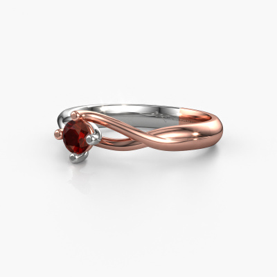 This 14 Carat rose gold ring is called Paulien and is set with 4 mm garnet. Are you looking for a fantasy rose gold engagement ring which you can customize to your own liking? This fantasy engagement ring is set with garnet which is carefully selected for this specific ring in order to create the best effect. Our expert goldsmith will create your ring in our own crafting studio, where the garnet will be set with great care. The ring will then be polished till it shines perfectly. Nothing but the best for the love of your life! The great thing about our online tool is, that you can compile your own jewellery into a unique, personalized piece. Each piece of jewellery is made just for you, with attention to detail and design.Are you on a budget? Please feel free to contact us, so we can go discuss your options. We offer our engagement rings at guaranteed best price, because we make them to order. You won't find such a price anywhere else!Our team adds new designs to our online collection daily. Our designers and goldsmiths work together in creating the best design. We strive to offer a diverse collection of jewels. Perhaps you have a specific jewel design in mind. One you came across somewhere. Please contact us for a free consultation. We will make you an offer, based on a fair price/ quality ratio, that will baffle you.To make it easier for you, we offer a 30 day return policy. Check our terms and conditions.