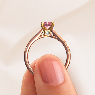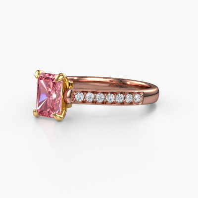 This 14 Carat rose gold ring is called Valorie rad 2 and is set with 7x5 mm pink lab grown diamond. Are you looking for a fantasy rose gold engagement ring which you can customize to your own liking? This fantasy engagement ring is set with pink lab grown diamond which is carefully selected for this specific ring in order to create the best effect. Our expert goldsmith will create your ring in our own crafting studio, where the pink lab grown diamond will be set with great care. The ring will then be polished till it shines perfectly. Nothing but the best for the love of your life! The great thing about our online tool is, that you can compile your own jewellery into a unique, personalized piece. Each piece of jewellery is made with passion and love by one of our master goldsmiths.Because we design and deliver our own rings, we can offer you a engagement ring at a price you won't find anywhere else. A ring is made to order, which helps prevent excess supplies, so we can make you a great price offer. We understand it feels risky, buying your engagement ring online, but we will gladly assist in the designing process, taking your budget into consideration.Do you have a specific ring in mind? One you came across somewhere. Please feel free to tell us your wishes and we will turn your design into a unique engagement ring. You can follow the development of your ring design because we use 3D drawings. This gives you a realistic preview of your design. We will gladly send you a non-binding offer, based on a fair price/ quality ratio. It will amaze you.To make it easier for you, we offer a 30 day return policy. Check our terms and conditions.