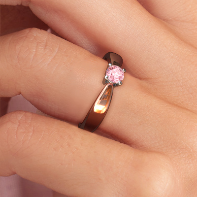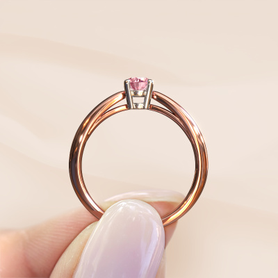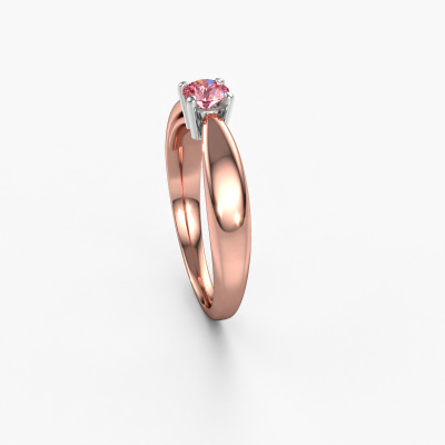 The ring shown above is called the Nichole. We call this a solitaire ring because it contains a single gemstone. The engagement ring is made in 14 Carat rose gold and has a round pink lab grown diamond of 4.2 mm. This extraordinary fantasy rose gold solitaire engagement ring is set with a beautiful round pink lab grown diamond to add sparkle to your proposal. The open prong setting allows light to strike the gemstone from various angles. Did you know a diamond represents everlasting love and fidelity? This makes it a perfect centrepiece. Our goldsmith carefully positions the gemstone of your choosing high on top of the ring, which makes it stand out. Each piece of jewellery is made just for you by our master goldsmiths in our own studio.After receiving your order, our goldsmiths will passionately start the creative process of making your engagement ring in our own studio. Because we don't have a big stockpile, these costs will not be passed on to you. Our pricing is proof of that! We offer top quality jewels at lowest price, guaranteed.Do you have a specific ring in mind? One you came across somewhere. Please feel free to tell us your wishes and we will turn your design into a unique engagement ring. You can follow the development of your ring design because we use 3D drawings. This gives you a realistic preview of your design. We will gladly send you a non-binding offer, based on a fair price/ quality ratio. It will amaze you.To make it easier for you, we offer a 30 day return policy. Check our terms and conditions.