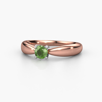 The ring shown above is called the Nichole. We call this a solitaire ring because it contains a single gemstone. The engagement ring is made in 14 Carat rose gold and has a round tourmaline green of 4.2 mm. This extraordinary fantasy rose gold solitaire engagement ring is set with a beautiful round tourmaline green to add sparkle to your proposal. The open prong setting allows light to strike the gemstone from various angles. Did you know a diamond represents everlasting love and fidelity? This makes it a perfect centrepiece. Our goldsmith carefully positions the gemstone of your choosing high on top of the ring, which makes it stand out. Each piece of jewellery is made just for you by our master goldsmiths in our own studio.After receiving your order, our goldsmiths will passionately start the creative process of making your engagement ring in our own studio. Because we don't have a big stockpile, these costs will not be passed on to you. Our pricing is proof of that! We offer top quality jewels at lowest price, guaranteed.Do you have a specific ring in mind? One you came across somewhere. Please feel free to tell us your wishes and we will turn your design into a unique engagement ring. You can follow the development of your ring design because we use 3D drawings. This gives you a realistic preview of your design. We will gladly send you a non-binding offer, based on a fair price/ quality ratio. It will amaze you.To make it easier for you, we offer a 30 day return policy. Check our terms and conditions.