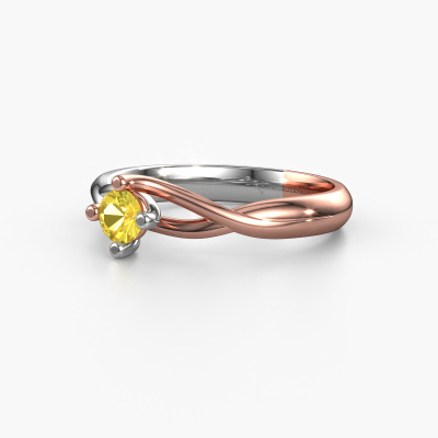 This 14 Carat rose gold ring is called Paulien and is set with 4 mm yellow sapphire. Are you looking for a fantasy rose gold engagement ring which you can customize to your own liking? This fantasy engagement ring is set with yellow sapphire which is carefully selected for this specific ring in order to create the best effect. Our expert goldsmith will create your ring in our own crafting studio, where the yellow sapphire will be set with great care. The ring will then be polished till it shines perfectly. Nothing but the best for the love of your life! The great thing about our online tool is, that you can compile your own jewellery into a unique, personalized piece. Each piece of jewellery is made just for you, with attention to detail and design.Are you on a budget? Please feel free to contact us, so we can go discuss your options. We offer our engagement rings at guaranteed best price, because we make them to order. You won't find such a price anywhere else!Our team adds new designs to our online collection daily. Our designers and goldsmiths work together in creating the best design. We strive to offer a diverse collection of jewels. Perhaps you have a specific jewel design in mind. One you came across somewhere. Please contact us for a free consultation. We will make you an offer, based on a fair price/ quality ratio, that will baffle you.To make it easier for you, we offer a 30 day return policy. Check our terms and conditions.