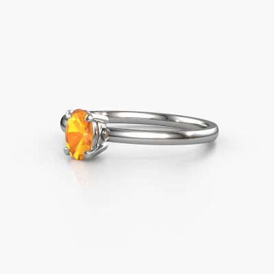 The ring shown above is called the Lynelle 1. We call this a solitaire ring because it contains a single gemstone. The engagement ring is made in platinum and has a oval citrin of 6x4 mm. This extraordinary fashionable platinum solitaire engagement ring is set with a beautiful oval citrin to add sparkle to your proposal. The open prong setting allows light to strike the gemstone from various angles. Did you know a diamond represents everlasting love and fidelity? This makes it a perfect centrepiece. Our goldsmith carefully positions the gemstone of your choosing high on top of the ring, which makes it stand out. Each piece of jewellery is unique in every way! Simply customize to your liking,By using a combination of the latest modern techniques, combined with ancient crafting, we can make all our engagement rings in our own studio. Each jewel is made to order. This is advantageous because we can offer you a price you won't find anywhere else.Different styles of new rings are made daily by our team. Perhaps you have found a solitaire engagement ring somewhere. One you would like to give to your loved one. Please feel free to share your thoughts and design with our jewel designers. We would love to turn your design into a fashionable engagement ring. You can follow the development of your ring design because we use very detailed 3D drawings. On top of that, you can order a dummy of the design. A dummy is a plastic ring, which can be shaped according your ring design. You can try it on and check if the engagement ring is up to standard. We will gladly send you a non-binding offer, based on a fair price/ quality ratio. The offer will baffle you, considering the quality of the ring and gemstones.To make it easier for you, we offer a 30 day return policy. Check our terms and conditions.