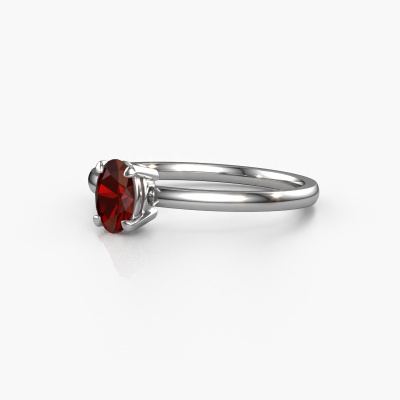 The ring shown above is called the Lynelle 1. We call this a solitaire ring because it contains a single gemstone. The engagement ring is made in platinum and has a oval garnet of 6x4 mm. This extraordinary fashionable platinum solitaire engagement ring is set with a beautiful oval garnet to add sparkle to your proposal. The open prong setting allows light to strike the gemstone from various angles. Did you know a diamond represents everlasting love and fidelity? This makes it a perfect centrepiece. Our goldsmith carefully positions the gemstone of your choosing high on top of the ring, which makes it stand out. Each piece of jewellery is unique in every way! Simply customize to your liking,By using a combination of the latest modern techniques, combined with ancient crafting, we can make all our engagement rings in our own studio. Each jewel is made to order. This is advantageous because we can offer you a price you won't find anywhere else.Different styles of new rings are made daily by our team. Perhaps you have found a solitaire engagement ring somewhere. One you would like to give to your loved one. Please feel free to share your thoughts and design with our jewel designers. We would love to turn your design into a fashionable engagement ring. You can follow the development of your ring design because we use very detailed 3D drawings. On top of that, you can order a dummy of the design. A dummy is a plastic ring, which can be shaped according your ring design. You can try it on and check if the engagement ring is up to standard. We will gladly send you a non-binding offer, based on a fair price/ quality ratio. The offer will baffle you, considering the quality of the ring and gemstones.To make it easier for you, we offer a 30 day return policy. Check our terms and conditions.