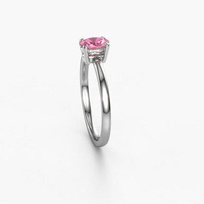 The ring shown above is called the Lynelle 1. We call this a solitaire ring because it contains a single gemstone. The engagement ring is made in platinum and has a oval pink sapphire of 6x4 mm. This extraordinary fashionable platinum solitaire engagement ring is set with a beautiful oval pink sapphire to add sparkle to your proposal. The open prong setting allows light to strike the gemstone from various angles. Did you know a diamond represents everlasting love and fidelity? This makes it a perfect centrepiece. Our goldsmith carefully positions the gemstone of your choosing high on top of the ring, which makes it stand out. Each piece of jewellery is unique in every way! Simply customize to your liking,By using a combination of the latest modern techniques, combined with ancient crafting, we can make all our engagement rings in our own studio. Each jewel is made to order. This is advantageous because we can offer you a price you won't find anywhere else.Different styles of new rings are made daily by our team. Perhaps you have found a solitaire engagement ring somewhere. One you would like to give to your loved one. Please feel free to share your thoughts and design with our jewel designers. We would love to turn your design into a fashionable engagement ring. You can follow the development of your ring design because we use very detailed 3D drawings. On top of that, you can order a dummy of the design. A dummy is a plastic ring, which can be shaped according your ring design. You can try it on and check if the engagement ring is up to standard. We will gladly send you a non-binding offer, based on a fair price/ quality ratio. The offer will baffle you, considering the quality of the ring and gemstones.To make it easier for you, we offer a 30 day return policy. Check our terms and conditions.