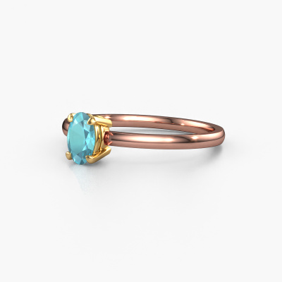 The ring shown above is called the Lynelle 1. We call this a solitaire ring because it contains a single gemstone. The engagement ring is made in 14 Carat rose gold and has a oval blue topaz of 6x4 mm. This extraordinary fashionable rose gold solitaire engagement ring is set with a beautiful oval blue topaz to add sparkle to your proposal. The open prong setting allows light to strike the gemstone from various angles. Did you know a diamond represents everlasting love and fidelity? This makes it a perfect centrepiece. Our goldsmith carefully positions the gemstone of your choosing high on top of the ring, which makes it stand out. Each piece of jewellery is unique in every way! Simply customize to your liking,By using a combination of the latest modern techniques, combined with ancient crafting, we can make all our engagement rings in our own studio. Each jewel is made to order. This is advantageous because we can offer you a price you won't find anywhere else.Different styles of new rings are made daily by our team. Perhaps you have found a solitaire engagement ring somewhere. One you would like to give to your loved one. Please feel free to share your thoughts and design with our jewel designers. We would love to turn your design into a fashionable engagement ring. You can follow the development of your ring design because we use very detailed 3D drawings. On top of that, you can order a dummy of the design. A dummy is a plastic ring, which can be shaped according your ring design. You can try it on and check if the engagement ring is up to standard. We will gladly send you a non-binding offer, based on a fair price/ quality ratio. The offer will baffle you, considering the quality of the ring and gemstones.To make it easier for you, we offer a 30 day return policy. Check our terms and conditions.