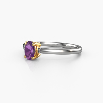 The ring shown above is called the Lynelle 1. We call this a solitaire ring because it contains a single gemstone. The engagement ring is made in 14 Carat white gold and has a oval amethyst of 6x4 mm. This extraordinary fashionable white gold solitaire engagement ring is set with a beautiful oval amethyst to add sparkle to your proposal. The open prong setting allows light to strike the gemstone from various angles. Did you know a diamond represents everlasting love and fidelity? This makes it a perfect centrepiece. Our goldsmith carefully positions the gemstone of your choosing high on top of the ring, which makes it stand out. Each piece of jewellery is unique in every way! Simply customize to your liking,By using a combination of the latest modern techniques, combined with ancient crafting, we can make all our engagement rings in our own studio. Each jewel is made to order. This is advantageous because we can offer you a price you won't find anywhere else.Different styles of new rings are made daily by our team. Perhaps you have found a solitaire engagement ring somewhere. One you would like to give to your loved one. Please feel free to share your thoughts and design with our jewel designers. We would love to turn your design into a fashionable engagement ring. You can follow the development of your ring design because we use very detailed 3D drawings. On top of that, you can order a dummy of the design. A dummy is a plastic ring, which can be shaped according your ring design. You can try it on and check if the engagement ring is up to standard. We will gladly send you a non-binding offer, based on a fair price/ quality ratio. The offer will baffle you, considering the quality of the ring and gemstones.To make it easier for you, we offer a 30 day return policy. Check our terms and conditions.