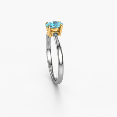 The ring shown above is called the Lynelle 1. We call this a solitaire ring because it contains a single gemstone. The engagement ring is made in 14 Carat white gold and has a oval blue topaz of 6x4 mm. This extraordinary fashionable white gold solitaire engagement ring is set with a beautiful oval blue topaz to add sparkle to your proposal. The open prong setting allows light to strike the gemstone from various angles. Did you know a diamond represents everlasting love and fidelity? This makes it a perfect centrepiece. Our goldsmith carefully positions the gemstone of your choosing high on top of the ring, which makes it stand out. Each piece of jewellery is unique in every way! Simply customize to your liking,By using a combination of the latest modern techniques, combined with ancient crafting, we can make all our engagement rings in our own studio. Each jewel is made to order. This is advantageous because we can offer you a price you won't find anywhere else.Different styles of new rings are made daily by our team. Perhaps you have found a solitaire engagement ring somewhere. One you would like to give to your loved one. Please feel free to share your thoughts and design with our jewel designers. We would love to turn your design into a fashionable engagement ring. You can follow the development of your ring design because we use very detailed 3D drawings. On top of that, you can order a dummy of the design. A dummy is a plastic ring, which can be shaped according your ring design. You can try it on and check if the engagement ring is up to standard. We will gladly send you a non-binding offer, based on a fair price/ quality ratio. The offer will baffle you, considering the quality of the ring and gemstones.To make it easier for you, we offer a 30 day return policy. Check our terms and conditions.