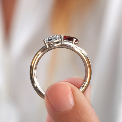 This platinum ring is called Chloe OVL-PER and is set with garnet. How would you describe the style of the love of your life? Does she have a unique sense of style? This stunning twist platinum engagement ring can be custom-made to your own or her liking. Our garnet gemstones have been carefully selected because we believe your unique engagement ring must be adorned with nothing but the most beautiful gemstone. Don't you agree? This jewel is created to add sparkle to your finger, each jewel is lovingly made by hand by our goldsmiths.Because we design and deliver our own rings, we can offer you a engagement ring at a price you won't find anywhere else. A ring is made to order, which helps prevent excess supplies, so we can make you a great price offer. We understand it feels risky, buying your engagement ring online, but we will gladly assist in the designing process, taking your budget into consideration.Do you have a specific ring in mind? One you came across somewhere. Please feel free to tell us your wishes and we will turn your design into a unique engagement ring. You can follow the development of your ring design because we use 3D drawings. This gives you a realistic preview of your design. We will gladly send you a non-binding offer, based on a fair price/ quality ratio. It will amaze you.To make it easier for you, we offer a 30 day return policy. Check our terms and conditions.