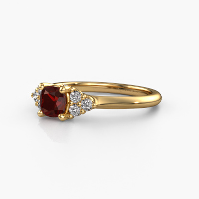 This 14 Carat gold ring is called Felipa CUS and is set with garnet. How would you describe the style of the love of your life? Does she have a unique sense of style? This stunning graceful gold engagement ring can be custom-made to your own or her liking. Our garnet gemstones have been carefully selected because we believe your vintage engagement ring must be adorned with nothing but the most beautiful gemstone. Don't you agree? This jewel is made just for you by our master goldsmiths in our own studio.By using our modern techniques, we can design and customize the finest quality jewels with the utmost care for you. Our engagement rings are always priced 30 percent lower than other jewellers. We make engagement rings to order so we don't have to maintain a large stock. If you have a certain budget, we are more than happy to advice you accordingly.Have you found a specific engagement ring somewhere which you would like to give to your loved one? Please feel free to express your wishes to our jewel designers because we would be honoured to turn your design into a vintage engagement ring. You can follow the development of your ring design because we use 3D drawings. This gives you a realistic preview of how your design will look. You can also preorder a dummy. A dummy is a plastic ring, which can be shaped according your ring design. You can try it on and check if its width and size are suitable for you. We will gladly send you a non-binding offer, based on a fair price/ quality ratio. It will amaze you, considering the quality of the ring and gemstones.To make it easier for you, we offer a 30 day return policy. Check our terms and conditions.