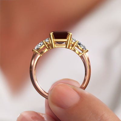 This 14 Carat rose gold ring is called Melani EME and is set with garnet. How would you describe the style of the love of your life? Does she have a unique sense of style? This stunning sublime rose gold promise ring can be custom-made to your own or her liking. Our garnet gemstones have been carefully selected because we believe your contemporary promise ring must be adorned with nothing but the most beautiful gemstone. Don't you agree? This jewel is made just for you, with attention to detail and design.Are you on a budget? Please feel free to contact us, so we can go discuss your options. We offer our promise ring at guaranteed best price, because we make them to order. You won't find such a price anywhere else!Do you have a specific ring in mind? One you came across somewhere. Please feel free to tell us your wishes and we will turn your design into a unique promise ring. You can follow the development of your ring design because we use 3D drawings. This gives you a realistic preview of your design. We will gladly send you a non-binding offer, based on a fair price/ quality ratio. It will amaze you.To make it easier for you, we offer a 30 day return policy. Check our terms and conditions.