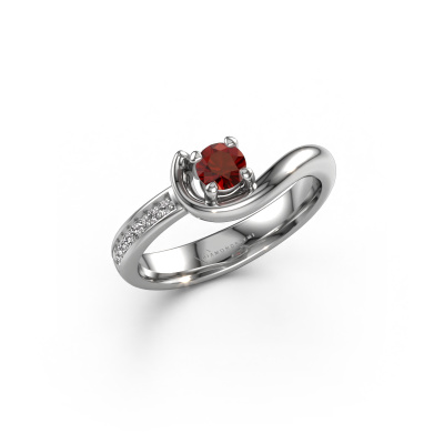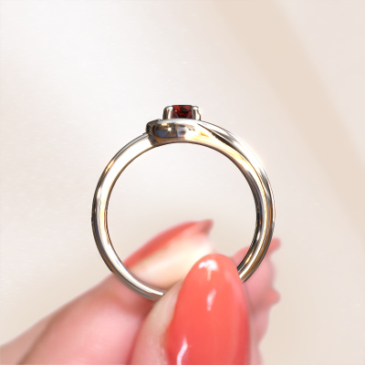 The ring shown above is called the Ceylin, we call this a solitaire ring because it contains a single gemstone. The engagement ring is made in 14 Carat white gold and has a round garnet of 4 mm. The cool thing about our configurator is that you can compile your own piece of jewellery, into a completely personalized one. This solitaire ring is crafted in the precious metals white gold with white gold, but of course you are free to pick your own colours. Each piece of jewellery is unique in every way! Simply customize to your liking,The solitaire ring is a special type of engagement ring. Its open prong setting allows light to strike the gemstone from various angles. This fantasy engagement ring is a stunning eye-catcher because of the high positioning of the gemstone. In order for you to commemorate your proposal with a unique ring, we carefully adorn this solitaire ring by hand. The love of your life deserves nothing but the best. Are you on a budget? Please feel free to contact us, so we can go discuss your options. We offer our engagement rings at guaranteed best price, because we make them to order. You won't find such a price anywhere else!Have you found a specific engagement ring somewhere which you would like to give to your loved one? Please feel free to express your wishes to our jewel designers because we would be honoured to turn your design into a fantasy engagement ring. You can follow the development of your ring design because we use 3D drawings. This gives you a realistic preview of how your design will look. You can also preorder a dummy. A dummy is a plastic ring, which can be shaped according your ring design. You can try it on and check if its width and size are suitable for you. We will gladly send you a non-binding offer, based on a fair price/ quality ratio. It will amaze you, considering the quality of the ring and gemstones.To make it easier for you, we offer a 30 day return policy. Check our terms and conditions.