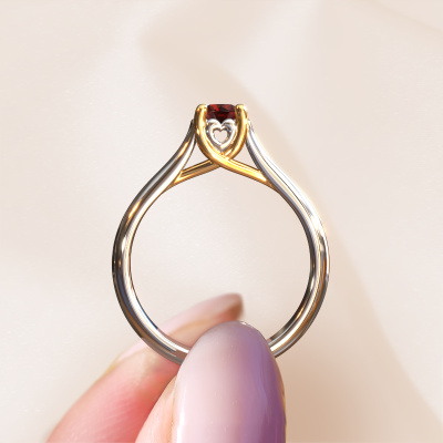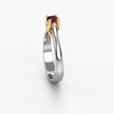The ring shown above is called the Nisa, we call this a solitaire ring because it contains a single gemstone. The engagement ring is made in 14 Carat white gold and has a round garnet of 4.2 mm. The cool thing about our configurator is that you can compile your own piece of jewellery, into a completely personalized one. This solitaire ring is crafted in the precious metals white gold with gold, but of course you are free to pick your own colours. Each piece of jewellery is made by a team of passionate goldsmiths and jewel designers. This will make your crown jewel truly eye-catching.The solitaire ring is a special type of engagement ring. Its open prong setting allows light to strike the gemstone from various angles. This unique engagement ring is a stunning eye-catcher because of the high positioning of the gemstone. In order for you to commemorate your proposal with a unique ring, we carefully adorn this solitaire ring by hand. The love of your life deserves nothing but the best. Are you on a budget? Please feel free to contact us, so we can go discuss your options. We offer our engagement rings at guaranteed best price, because we make them to order. You won't find such a price anywhere else!Our designers and goldsmiths work together each day, creating new jewels. Perhaps you have found a nice unique engagement ring somewhere, which can be used to customize your unique ring. Please feel free to contact us. We will make you an offer, based on a fair price/ quality ratio, which will amaze you.To make it easier for you, we offer a 30 day return policy. Check our terms and conditions.