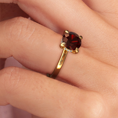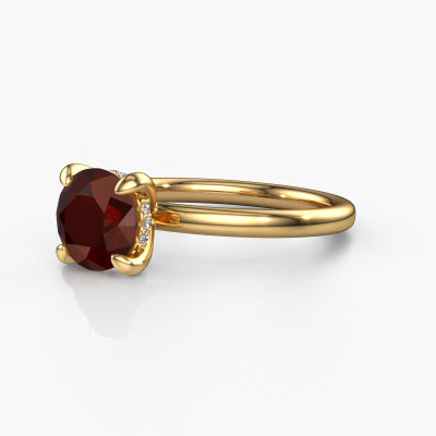 In your eyes, no one else compares to her. She is one in a million, unlike anyone else and pure? These qualities are emphasized perfectly by our exclusive gold solitaire garnet ring. This garnet is carefully selected by our keen artisan goldsmiths. It equals the unique qualities of the love of your life. There is no better way to memorialize your proposal than this symbol of true love. The ring shown above is called the Simone RND 2, we call this a solitaire ring because it contains a single gemstone. The engagement ring is made in 14 Carat gold and has a round garnet of 7.3 mm. Each piece of jewellery is unique in every way! Simply customize to your liking,After receiving your order, our goldsmiths will passionately start the creative process of making your engagement ring in our own studio. Because we don't have a big stockpile, these costs will not be passed on to you. Our pricing is proof of that! We offer top quality jewels at lowest price, guaranteed.Our team adds new designs to our online collection daily. Our designers and goldsmiths work together in creating the best design. We strive to offer a diverse collection of jewels. Perhaps you have a specific jewel design in mind. One you came across somewhere. Please contact us for a free consultation. We will make you an offer, based on a fair price/ quality ratio, that will baffle you.To make it easier for you, we offer a 30 day return policy. Check our terms and conditions.