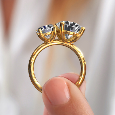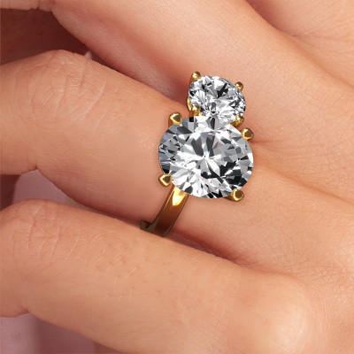 This 14 Carat gold ring is called Toi et Moi OVL-RND and is set with lab grown diamond. Are you in the market for a unique gold engagement ring with a trendy appearance? Then this ring is perfect for you. Simply customize to your or her liking. This chic graceful engagement ring is set with exquisite lab grown diamond. It has been carefully selected because your engagement ring must be adorned with nothing but the most beautiful gemstone. Our expert goldsmith will create your ring in our own studio where the lab grown diamond will be set with great care. The ring will then be polished to perfection to give it that extra sparkle. The perfect ring for your significant other! Are you on a budget? Please feel free to contact us, so we can go discuss your options. We offer our engagement rings at guaranteed best price, because we make them to order. You won't find such a price anywhere else!Have you found a specific engagement ring somewhere which you would like to give to your loved one? Please feel free to express your wishes to our jewel designers because we would be honoured to turn your design into a chic engagement ring. You can follow the development of your ring design because we use 3D drawings. This gives you a realistic preview of how your design will look. You can also preorder a dummy. A dummy is a plastic ring, which can be shaped according your ring design. You can try it on and check if its width and size are suitable for you. We will gladly send you a non-binding offer, based on a fair price/ quality ratio. It will amaze you, considering the quality of the ring and gemstones.To make it easier for you, we offer a 30 day return policy. Check our terms and conditions.