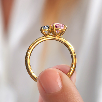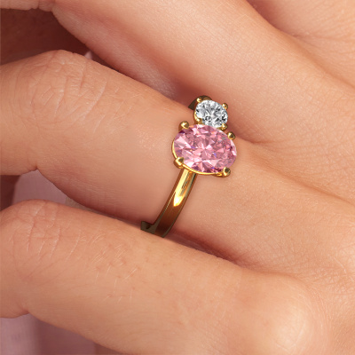 This 14 Carat gold ring is called Toi et Moi OVL-RND and is set with pink lab grown diamond. Are you in the market for a unique gold engagement ring with a trendy appearance? Then this ring is perfect for you. Simply customize to your or her liking. This chic graceful engagement ring is set with exquisite pink lab grown diamond. It has been carefully selected because your engagement ring must be adorned with nothing but the most beautiful gemstone. Our expert goldsmith will create your ring in our own studio where the pink lab grown diamond will be set with great care. The ring will then be polished to perfection to give it that extra sparkle. The perfect ring for your significant other! Are you on a budget? Please feel free to contact us, so we can go discuss your options. We offer our engagement rings at guaranteed best price, because we make them to order. You won't find such a price anywhere else!Have you found a specific engagement ring somewhere which you would like to give to your loved one? Please feel free to express your wishes to our jewel designers because we would be honoured to turn your design into a chic engagement ring. You can follow the development of your ring design because we use 3D drawings. This gives you a realistic preview of how your design will look. You can also preorder a dummy. A dummy is a plastic ring, which can be shaped according your ring design. You can try it on and check if its width and size are suitable for you. We will gladly send you a non-binding offer, based on a fair price/ quality ratio. It will amaze you, considering the quality of the ring and gemstones.To make it easier for you, we offer a 30 day return policy. Check our terms and conditions.