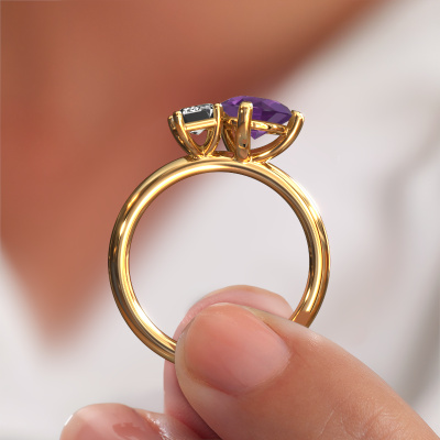 This 14 Carat gold ring is called Toi et Moi PER-EME and is set with amethyst. Are you in the market for a unique gold engagement ring with a trendy appearance? Then this ring is perfect for you. Simply customize to your or her liking. This chic sparkling engagement ring is set with exquisite amethyst. It has been carefully selected because your engagement ring must be adorned with nothing but the most beautiful gemstone. Our expert goldsmith will create your ring in our own studio where the amethyst will be set with great care. The ring will then be polished to perfection to give it that extra sparkle. The perfect ring for your significant other! By using a combination of the latest modern techniques, combined with ancient crafting, we can make all our engagement rings in our own studio. Each jewel is made to order. This is advantageous because we can offer you a price you won't find anywhere else.Our team adds new designs to our online collection daily. Our designers and goldsmiths work together in creating the best design. We strive to offer a diverse collection of jewels. Perhaps you have a specific jewel design in mind. One you came across somewhere. Please contact us for a free consultation. We will make you an offer, based on a fair price/ quality ratio, that will baffle you.To make it easier for you, we offer a 30 day return policy. Check our terms and conditions.