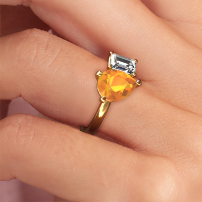 This 14 Carat gold ring is called Toi et Moi PER-EME and is set with citrin. Are you in the market for a unique gold engagement ring with a trendy appearance? Then this ring is perfect for you. Simply customize to your or her liking. This chic sparkling engagement ring is set with exquisite citrin. It has been carefully selected because your engagement ring must be adorned with nothing but the most beautiful gemstone. Our expert goldsmith will create your ring in our own studio where the citrin will be set with great care. The ring will then be polished to perfection to give it that extra sparkle. The perfect ring for your significant other! By using a combination of the latest modern techniques, combined with ancient crafting, we can make all our engagement rings in our own studio. Each jewel is made to order. This is advantageous because we can offer you a price you won't find anywhere else.Our team adds new designs to our online collection daily. Our designers and goldsmiths work together in creating the best design. We strive to offer a diverse collection of jewels. Perhaps you have a specific jewel design in mind. One you came across somewhere. Please contact us for a free consultation. We will make you an offer, based on a fair price/ quality ratio, that will baffle you.To make it easier for you, we offer a 30 day return policy. Check our terms and conditions.