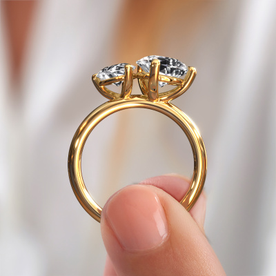 This 14 Carat gold ring is called Toi et Moi PER-PER and is set with lab grown diamond. Are you in the market for a unique gold engagement ring with a trendy appearance? Then this ring is perfect for you. Simply customize to your or her liking. This fashionable fashionable engagement ring is set with exquisite lab grown diamond. It has been carefully selected because your engagement ring must be adorned with nothing but the most beautiful gemstone. Our expert goldsmith will create your ring in our own studio where the lab grown diamond will be set with great care. The ring will then be polished to perfection to give it that extra sparkle. The perfect ring for your significant other! After receiving your order, our goldsmiths will passionately start the creative process of making your engagement ring in our own studio. Because we don't have a big stockpile, these costs will not be passed on to you. Our pricing is proof of that! We offer top quality jewels at lowest price, guaranteed.Our designers and goldsmiths work together each day, creating new jewels. Perhaps you have found a nice fashionable engagement ring somewhere, which can be used to customize your unique ring. Please feel free to contact us. We will make you an offer, based on a fair price/ quality ratio, which will amaze you.To make it easier for you, we offer a 30 day return policy. Check our terms and conditions.