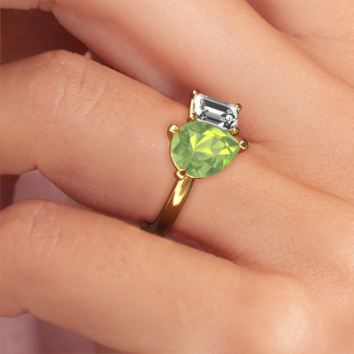 This 14 Carat gold ring is called Toi et Moi PER-EME and is set with peridot. Are you in the market for a unique gold engagement ring with a trendy appearance? Then this ring is perfect for you. Simply customize to your or her liking. This chic sparkling engagement ring is set with exquisite peridot. It has been carefully selected because your engagement ring must be adorned with nothing but the most beautiful gemstone. Our expert goldsmith will create your ring in our own studio where the peridot will be set with great care. The ring will then be polished to perfection to give it that extra sparkle. The perfect ring for your significant other! By using a combination of the latest modern techniques, combined with ancient crafting, we can make all our engagement rings in our own studio. Each jewel is made to order. This is advantageous because we can offer you a price you won't find anywhere else.Our team adds new designs to our online collection daily. Our designers and goldsmiths work together in creating the best design. We strive to offer a diverse collection of jewels. Perhaps you have a specific jewel design in mind. One you came across somewhere. Please contact us for a free consultation. We will make you an offer, based on a fair price/ quality ratio, that will baffle you.To make it easier for you, we offer a 30 day return policy. Check our terms and conditions.