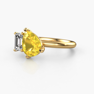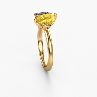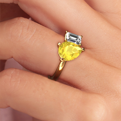 This 14 Carat gold ring is called Toi et Moi PER-EME and is set with yellow sapphire. Are you in the market for a unique gold engagement ring with a trendy appearance? Then this ring is perfect for you. Simply customize to your or her liking. This chic sparkling engagement ring is set with exquisite yellow sapphire. It has been carefully selected because your engagement ring must be adorned with nothing but the most beautiful gemstone. Our expert goldsmith will create your ring in our own studio where the yellow sapphire will be set with great care. The ring will then be polished to perfection to give it that extra sparkle. The perfect ring for your significant other! By using a combination of the latest modern techniques, combined with ancient crafting, we can make all our engagement rings in our own studio. Each jewel is made to order. This is advantageous because we can offer you a price you won't find anywhere else.Our team adds new designs to our online collection daily. Our designers and goldsmiths work together in creating the best design. We strive to offer a diverse collection of jewels. Perhaps you have a specific jewel design in mind. One you came across somewhere. Please contact us for a free consultation. We will make you an offer, based on a fair price/ quality ratio, that will baffle you.To make it easier for you, we offer a 30 day return policy. Check our terms and conditions.