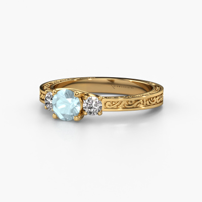 This 14 Carat gold ring is called Betty 1 and is set with aquamarine. An extraordinary gold vintage ring. One that will surely make the love of your life shine like a diamond! That is what we hope to achieve. This Celtic engagement ring is set with exquisite aquamarine. Whichever gemstone you choose from our selection, is up to you. The gemstone is selected with great care because we believe your engagement ring must be adorned with nothing but the most beautiful gemstone. Wouldn't you agree? Our expert goldsmith will design your ring in our own artisan studio, where the aquamarine will be set with great precision. The ring will then be polished till it is absolutely perfect. Nothing but the best for the love of your life! This jewel is created to add sparkle to your finger, each jewel is lovingly made by hand by our goldsmiths.Are you on a budget? Please feel free to contact us, so we can go discuss your options. We offer our engagement rings at guaranteed best price, because we make them to order. You won't find such a price anywhere else!Our team adds new designs to our online collection daily. Our designers and goldsmiths work together in creating the best design. We strive to offer a diverse collection of jewels. Perhaps you have a specific jewel design in mind. One you came across somewhere. Please contact us for a free consultation. We will make you an offer, based on a fair price/ quality ratio, that will baffle you.To make it easier for you, we offer a 30 day return policy. Check our terms and conditions.