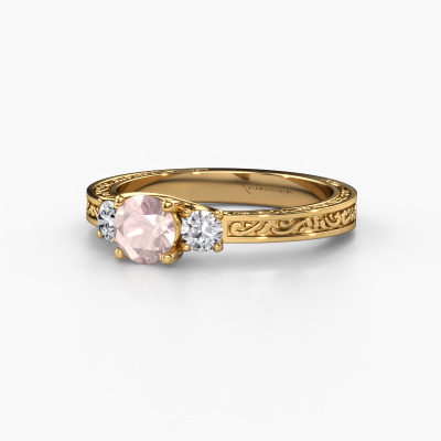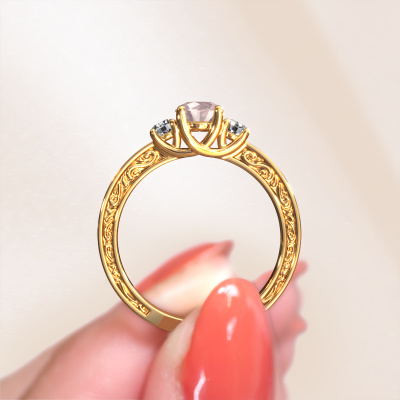 This 14 Carat gold ring is called Betty 1 and is set with morganite champagne. An extraordinary gold vintage ring. One that will surely make the love of your life shine like a diamond! That is what we hope to achieve. This Celtic engagement ring is set with exquisite morganite champagne. Whichever gemstone you choose from our selection, is up to you. The gemstone is selected with great care because we believe your engagement ring must be adorned with nothing but the most beautiful gemstone. Wouldn't you agree? Our expert goldsmith will design your ring in our own artisan studio, where the morganite champagne will be set with great precision. The ring will then be polished till it is absolutely perfect. Nothing but the best for the love of your life! This jewel is created to add sparkle to your finger, each jewel is lovingly made by hand by our goldsmiths.Are you on a budget? Please feel free to contact us, so we can go discuss your options. We offer our engagement rings at guaranteed best price, because we make them to order. You won't find such a price anywhere else!Our team adds new designs to our online collection daily. Our designers and goldsmiths work together in creating the best design. We strive to offer a diverse collection of jewels. Perhaps you have a specific jewel design in mind. One you came across somewhere. Please contact us for a free consultation. We will make you an offer, based on a fair price/ quality ratio, that will baffle you.To make it easier for you, we offer a 30 day return policy. Check our terms and conditions.