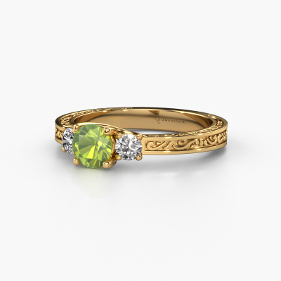 This 14 Carat gold ring is called Betty 1 and is set with peridot. An extraordinary gold vintage ring. One that will surely make the love of your life shine like a diamond! That is what we hope to achieve. This Celtic engagement ring is set with exquisite peridot. Whichever gemstone you choose from our selection, is up to you. The gemstone is selected with great care because we believe your engagement ring must be adorned with nothing but the most beautiful gemstone. Wouldn't you agree? Our expert goldsmith will design your ring in our own artisan studio, where the peridot will be set with great precision. The ring will then be polished till it is absolutely perfect. Nothing but the best for the love of your life! This jewel is created to add sparkle to your finger, each jewel is lovingly made by hand by our goldsmiths.Are you on a budget? Please feel free to contact us, so we can go discuss your options. We offer our engagement rings at guaranteed best price, because we make them to order. You won't find such a price anywhere else!Our team adds new designs to our online collection daily. Our designers and goldsmiths work together in creating the best design. We strive to offer a diverse collection of jewels. Perhaps you have a specific jewel design in mind. One you came across somewhere. Please contact us for a free consultation. We will make you an offer, based on a fair price/ quality ratio, that will baffle you.To make it easier for you, we offer a 30 day return policy. Check our terms and conditions.