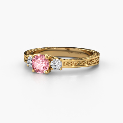 This 14 Carat gold ring is called Betty 1 and is set with pink lab grown diamond. An extraordinary gold vintage ring. One that will surely make the love of your life shine like a diamond! That is what we hope to achieve. This Celtic engagement ring is set with exquisite pink lab grown diamonds. Whichever gemstone you choose from our selection, is up to you. The gemstone is selected with great care because we believe your engagement ring must be adorned with nothing but the most beautiful gemstone. Wouldn't you agree? Our expert goldsmith will design your ring in our own artisan studio, where the pink lab grown diamond will be set with great precision. The ring will then be polished till it is absolutely perfect. Nothing but the best for the love of your life! This jewel is created to add sparkle to your finger, each jewel is lovingly made by hand by our goldsmiths.Are you on a budget? Please feel free to contact us, so we can go discuss your options. We offer our engagement rings at guaranteed best price, because we make them to order. You won't find such a price anywhere else!Our team adds new designs to our online collection daily. Our designers and goldsmiths work together in creating the best design. We strive to offer a diverse collection of jewels. Perhaps you have a specific jewel design in mind. One you came across somewhere. Please contact us for a free consultation. We will make you an offer, based on a fair price/ quality ratio, that will baffle you.To make it easier for you, we offer a 30 day return policy. Check our terms and conditions.