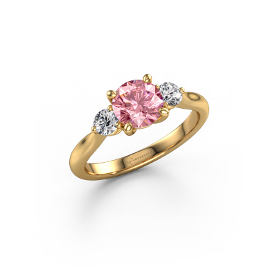This 14 Carat gold ring is called Lieselot RND and is set with 6.5 mm pink lab grown diamond. This filigree gold engagement ring is a true work of art! A beautifully adorned design of intricate wires. With dedication, patience and the utmost precision, our expert goldsmith will design a ring just for you. The adornment of small wiring is crafted to perfection by hand. It's a lengthy process which includes welding, crafting and polishing until our Goldsmiths are completely satisfied with the result: a perfect eye-catching ring that makes her shine with delight. Therefore the fantasy filigree engagement ring is an extraordinary gift to bestow upon the love of your life. A handmade one-of-a-kind personalized ring, to be given to that special someone on that special moment when you pop the question. Isn't that wonderful? This piece of jewellery is made just for you by our master goldsmiths in our own studio.Because we design and deliver our own rings, we can offer you a engagement ring at a price you won't find anywhere else. A ring is made to order, which helps prevent excess supplies, so we can make you a great price offer. We understand it feels risky, buying your engagement ring online, but we will gladly assist in the designing process, taking your budget into consideration.Our team adds new designs to our online collection daily. Our designers and goldsmiths work together in creating the best design. We strive to offer a diverse collection of jewels. Perhaps you have a specific jewel design in mind. One you came across somewhere. Please contact us for a free consultation. We will make you an offer, based on a fair price/ quality ratio, that will baffle you.To make it easier for you, we offer a 30 day return policy. Check our terms and conditions.