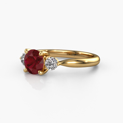 This 14 Carat gold ring is called Lieselot RND and is set with 6.5 mm ruby. This filigree gold engagement ring is a true work of art! A beautifully adorned design of intricate wires. With dedication, patience and the utmost precision, our expert goldsmith will design a ring just for you. The adornment of small wiring is crafted to perfection by hand. It's a lengthy process which includes welding, crafting and polishing until our Goldsmiths are completely satisfied with the result: a perfect eye-catching ring that makes her shine with delight. Therefore the fantasy filigree engagement ring is an extraordinary gift to bestow upon the love of your life. A handmade one-of-a-kind personalized ring, to be given to that special someone on that special moment when you pop the question. Isn't that wonderful? This piece of jewellery is made just for you by our master goldsmiths in our own studio.Because we design and deliver our own rings, we can offer you a engagement ring at a price you won't find anywhere else. A ring is made to order, which helps prevent excess supplies, so we can make you a great price offer. We understand it feels risky, buying your engagement ring online, but we will gladly assist in the designing process, taking your budget into consideration.Our team adds new designs to our online collection daily. Our designers and goldsmiths work together in creating the best design. We strive to offer a diverse collection of jewels. Perhaps you have a specific jewel design in mind. One you came across somewhere. Please contact us for a free consultation. We will make you an offer, based on a fair price/ quality ratio, that will baffle you.To make it easier for you, we offer a 30 day return policy. Check our terms and conditions.