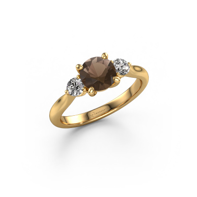 This 14 Carat gold ring is called Lieselot RND and is set with 6.5 mm smokey quartz. This filigree gold engagement ring is a true work of art! A beautifully adorned design of intricate wires. With dedication, patience and the utmost precision, our expert goldsmith will design a ring just for you. The adornment of small wiring is crafted to perfection by hand. It's a lengthy process which includes welding, crafting and polishing until our Goldsmiths are completely satisfied with the result: a perfect eye-catching ring that makes her shine with delight. Therefore the fantasy filigree engagement ring is an extraordinary gift to bestow upon the love of your life. A handmade one-of-a-kind personalized ring, to be given to that special someone on that special moment when you pop the question. Isn't that wonderful? This piece of jewellery is made just for you by our master goldsmiths in our own studio.Because we design and deliver our own rings, we can offer you a engagement ring at a price you won't find anywhere else. A ring is made to order, which helps prevent excess supplies, so we can make you a great price offer. We understand it feels risky, buying your engagement ring online, but we will gladly assist in the designing process, taking your budget into consideration.Our team adds new designs to our online collection daily. Our designers and goldsmiths work together in creating the best design. We strive to offer a diverse collection of jewels. Perhaps you have a specific jewel design in mind. One you came across somewhere. Please contact us for a free consultation. We will make you an offer, based on a fair price/ quality ratio, that will baffle you.To make it easier for you, we offer a 30 day return policy. Check our terms and conditions.