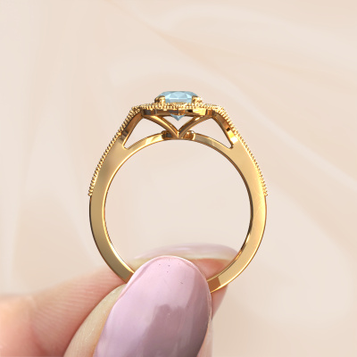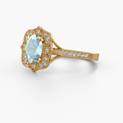 This 14 Carat gold ring is called Loni and is set with 7,5x5,5 mm aquamarine. This filigree gold engagement ring is a true work of art! A beautifully adorned design of intricate wires. With dedication, patience and the utmost precision, our expert goldsmith will design a ring just for you. The adornment of small wiring is crafted to perfection by hand. It's a lengthy process which includes welding, crafting and polishing until our Goldsmiths are completely satisfied with the result: a perfect eye-catching ring that makes her shine with delight. Therefore the vintage filigree engagement ring is an extraordinary gift to bestow upon the love of your life. A handmade one-of-a-kind personalized ring, to be given to that special someone on that special moment when you pop the question. Isn't that wonderful? This piece of jewellery is made with passion and love by one of our master goldsmiths.Because we design and deliver our own rings, we can offer you a engagement ring at a price you won't find anywhere else. A ring is made to order, which helps prevent excess supplies, so we can make you a great price offer. We understand it feels risky, buying your engagement ring online, but we will gladly assist in the designing process, taking your budget into consideration.Our team adds new designs to our online collection daily. Our designers and goldsmiths work together in creating the best design. We strive to offer a diverse collection of jewels. Perhaps you have a specific jewel design in mind. One you came across somewhere. Please contact us for a free consultation. We will make you an offer, based on a fair price/ quality ratio, that will baffle you.To make it easier for you, we offer a 30 day return policy. Check our terms and conditions.