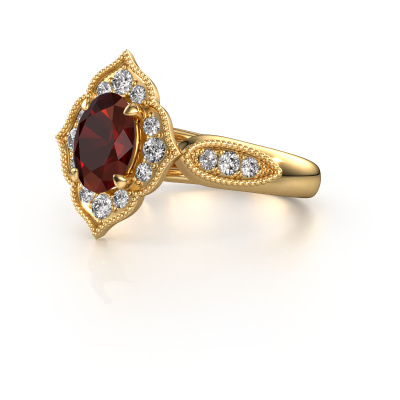 This 14 Carat gold ring is called Rosan and is set with garnet. An extraordinary gold vintage ring. One that will surely make the love of your life shine like a diamond! That is what we hope to achieve. This vintage engagement ring is set with exquisite garnet. Whichever gemstone you choose from our selection, is up to you. The gemstone is selected with great care because we believe your engagement ring must be adorned with nothing but the most beautiful gemstone. Wouldn't you agree? Our expert goldsmith will design your ring in our own artisan studio, where the garnet will be set with great precision. The ring will then be polished till it is absolutely perfect. Nothing but the best for the love of your life! This jewel is made just for you by our master goldsmiths in our own studio.After receiving your order, our goldsmiths will passionately start the creative process of making your engagement ring in our own studio. Because we don't have a big stockpile, these costs will not be passed on to you. Our pricing is proof of that! We offer top quality jewels at lowest price, guaranteed.Our team adds new designs to our online collection daily. Our designers and goldsmiths work together in creating the best design. We strive to offer a diverse collection of jewels. Perhaps you have a specific jewel design in mind. One you came across somewhere. Please contact us for a free consultation. We will make you an offer, based on a fair price/ quality ratio, that will baffle you.To make it easier for you, we offer a 30 day return policy. Check our terms and conditions.