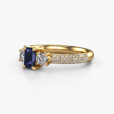 This 14 Carat gold ring is called Marielle EME and is set with 6x4 mm sapphire. Does your girlfriend fancy exclusive jewellery? Or would you like to show her that she deserves the finest jewellery? This gold ring is pure craftsmanship, love and passion combined with the latest techniques coming together in perfect harmony. It requires a keen eye, patience and a skilful hand to mould this ring into perfection. Just the job for our expert goldsmith! The sapphire set gemstones gives this gold ring an extra glamorous appearance. Customize the style of the special engagement ring to her liking with a wide variety of precious metals and gemstones which you select. That is how you create a unique ring for the most exclusive woman in your life! This jewel is created to add sparkle to your finger, each jewel is lovingly made by hand by our goldsmiths.Because we design and deliver our own rings, we can offer you a engagement ring at a price you won't find anywhere else. A ring is made to order, which helps prevent excess supplies, so we can make you a great price offer. We understand it feels risky, buying your engagement ring online, but we will gladly assist in the designing process, taking your budget into consideration.Our team adds new designs to our online collection daily. Our designers and goldsmiths work together in creating the best design. We strive to offer a diverse collection of jewels. Perhaps you have a specific jewel design in mind. One you came across somewhere. Please contact us for a free consultation. We will make you an offer, based on a fair price/ quality ratio, that will baffle you.To make it easier for you, we offer a 30 day return policy. Check our terms and conditions.