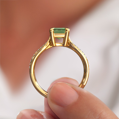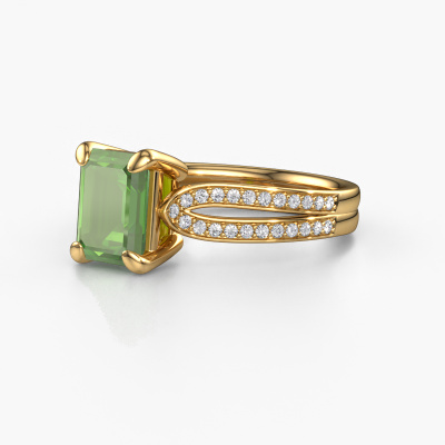 This 14 Carat gold ring is called Antonia eme 2 and is set with 8x6 mm tourmaline green. Does your girlfriend fancy exclusive jewellery? Or would you like to show her that she deserves the finest jewellery? This gold ring is pure craftsmanship, love and passion combined with the latest techniques coming together in perfect harmony. It requires a keen eye, patience and a skilful hand to mould this ring into perfection. Just the job for our expert goldsmith! The tourmaline green set gemstones gives this gold ring an extra glamorous appearance. Customize the style of the split band engagement ring to her liking with a wide variety of precious metals and gemstones which you select. That is how you create a unique ring for the most exclusive woman in your life! This jewel is made to shine bright around your finger. Each jewel is hand made with love by our goldsmiths.After receiving your order, our goldsmiths will start the creative process of making your Antonia eme 2 engagement ring. We don't keep stock. This is advantageous because these costs will not be passed on to you. Therefore, we can offer jewellery at exceptionally low prices.Do you have a specific ring in mind? One you came across somewhere. Please feel free to tell us your wishes and we will turn your design into a unique engagement ring. You can follow the development of your ring design because we use 3D drawings. This gives you a realistic preview of your design. We will gladly send you a non-binding offer, based on a fair price/ quality ratio. It will amaze you.To make it easier for you, we offer a 30 day return policy. Check our terms and conditions.