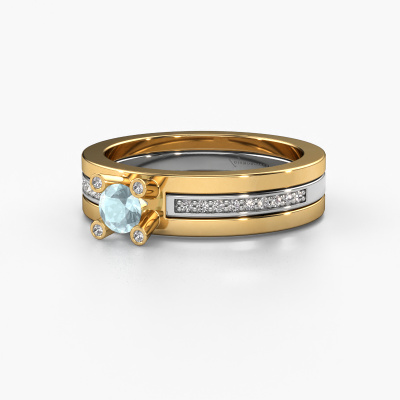 The ring shown above is called the Alisha. We call this type of ring a pavé solitaire ring because it has one centre gemstone and a band that is also pave set with gemstones. The 14 Carat gold engagement ring is set with a round 4 mm aquamarine centre stone and the band is pave set with diamond gemstones. Each jewel is unique in every way! Simply customize to your liking,This design gold pavé solitaire engagement ring has an exquisite round aquamarine centre stone. To further accentuate the centre stone, the band is fully set with more diamonds. Its open prong setting allows light to strike the aquamarine from various angles and this adds sparkle to your aquamarine ring. The photo shown above depicts the goldsmith's carefully handcrafted details of the ring. The high positioning of the centre stone is truly eye-catching. The perfect engagement ring for the crown jewel of your life! By using a combination of the latest modern techniques, combined with ancient crafting, we can make all our engagement rings in our own studio. Each jewel is made to order. This is advantageous because we can offer you a price you won't find anywhere else.Have you found a specific engagement ring somewhere which you would like to give to your loved one? Please feel free to express your wishes to our jewel designers because we would be honoured to turn your design into a design engagement ring. You can follow the development of your ring design because we use 3D drawings. This gives you a realistic preview of how your design will look. You can also preorder a dummy. A dummy is a plastic ring, which can be shaped according your ring design. You can try it on and check if its width and size are suitable for you. We will gladly send you a non-binding offer, based on a fair price/ quality ratio. It will amaze you, considering the quality of the ring and gemstones.To make it easier for you, we offer a 30 day return policy. Check our terms and conditions.