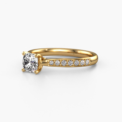 The ring shown above is called the Mignon cus 2. We call this type of ring a pavé solitaire ring because it has one centre gemstone and a band that is also pave set with gemstones. The 14 Carat gold engagement ring is set with a cushion 0.70 crt diamond centre stone and the band is pave set with lab grown diamond gemstones. Each jewel is made with passion and love by one of our master goldsmiths.This exclusive gold pavé solitaire engagement ring has an exquisite cushion diamond centre stone. To further accentuate the centre stone, the band is fully set with more lab-grown diamonds. Its open prong setting allows light to strike the diamond from various angles and this adds sparkle to your diamond ring. The photo shown above depicts the goldsmith's carefully handcrafted details of the ring. The high positioning of the centre stone is truly eye-catching. The perfect engagement ring for the crown jewel of your life! After receiving your order, our goldsmiths will start the creative process of making your Mignon cus 2 engagement ring. We don't keep stock. This is advantageous because these costs will not be passed on to you. Therefore, we can offer jewellery at exceptionally low prices.Our team adds new designs to our online collection daily. Our designers and goldsmiths work together in creating the best design. We strive to offer a diverse collection of jewels. Perhaps you have a specific jewel design in mind. One you came across somewhere. Please contact us for a free consultation. We will make you an offer, based on a fair price/ quality ratio, that will baffle you.To make it easier for you, we offer a 30 day return policy. Check our terms and conditions.