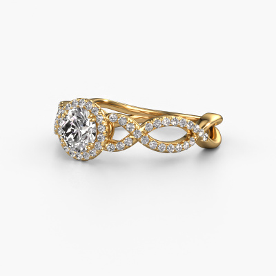 The ring shown above is called the Dionne rnd. We call this type of ring a pavé solitaire ring because it has one centre gemstone and a band that is also pave set with gemstones. The 14 Carat gold engagement ring is set with a round 0.50 crt diamond centre stone and the band is pave set with diamond gemstones. Each jewel is made just for you by our master goldsmiths in our own studio.This classic gold pavé solitaire engagement ring has an exquisite round diamond centre stone. To further accentuate the centre stone, the band is fully set with more diamonds. Its open prong setting allows light to strike the diamond from various angles and this adds sparkle to your diamond ring. The photo shown above depicts the goldsmith's carefully handcrafted details of the ring. The high positioning of the centre stone is truly eye-catching. The perfect engagement ring for the crown jewel of your life! Because we design and deliver our own rings, we can offer you a engagement ring at a price you won't find anywhere else. A ring is made to order, which helps prevent excess supplies, so we can make you a great price offer. We understand it feels risky, buying your engagement ring online, but we will gladly assist in the designing process, taking your budget into consideration.Do you have a specific ring in mind? One you came across somewhere. Please feel free to tell us your wishes and we will turn your design into a unique engagement ring. You can follow the development of your ring design because we use 3D drawings. This gives you a realistic preview of your design. We will gladly send you a non-binding offer, based on a fair price/ quality ratio. It will amaze you.To make it easier for you, we offer a 30 day return policy. Check our terms and conditions.