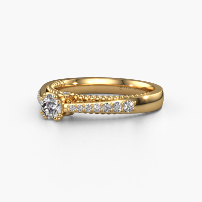 The ring shown above is called the Rozella. We call this type of ring a pavé solitaire ring because it has one centre gemstone and a band that is also pave set with gemstones. The 14 Carat gold engagement ring is set with a round 0.25 crt diamond centre stone and the band is pave set with lab grown diamond gemstones. Each jewel is made to shine bright around your finger. Each jewel is hand made with love by our goldsmiths.This unique gold pavé solitaire engagement ring has an exquisite round diamond centre stone. To further accentuate the centre stone, the band is fully set with more lab-grown diamonds. Its open prong setting allows light to strike the diamond from various angles and this adds sparkle to your diamond ring. The photo shown above depicts the goldsmith's carefully handcrafted details of the ring. The high positioning of the centre stone is truly eye-catching. The perfect engagement ring for the crown jewel of your life! After receiving your order, our goldsmiths will start the creative process of making your Rozella engagement ring. We don't keep stock. This is advantageous because these costs will not be passed on to you. Therefore, we can offer jewellery at exceptionally low prices.Our designers and goldsmiths work together each day, creating new jewels. Perhaps you have found a nice unique engagement ring somewhere, which can be used to customize your unique ring. Please feel free to contact us. We will make you an offer, based on a fair price/ quality ratio, which will amaze you.To make it easier for you, we offer a 30 day return policy. Check our terms and conditions.