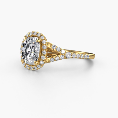 The ring shown above is called the Kimber CSH. We call this type of ring a pavé solitaire ring because it has one centre gemstone and a band that is also pave set with gemstones. The 14 Carat gold engagement ring is set with a cushion rectangle 1.25 crt lab grown diamond centre stone and the band is pave set with lab grown diamond gemstones. Each jewel is made just for you by our master goldsmiths in our own studio.This classic gold pavé solitaire engagement ring has an exquisite cushion rectangle lab grown diamond centre stone. To further accentuate the centre stone, the band is fully set with more lab-grown diamonds. Its open prong setting allows light to strike the lab grown diamond from various angles and this adds sparkle to your lab grown diamond ring. The photo shown above depicts the goldsmith's carefully handcrafted details of the ring. The high positioning of the centre stone is truly eye-catching. The perfect engagement ring for the crown jewel of your life! Because we design and deliver our own rings, we can offer you a engagement ring at a price you won't find anywhere else. A ring is made to order, which helps prevent excess supplies, so we can make you a great price offer. We understand it feels risky, buying your engagement ring online, but we will gladly assist in the designing process, taking your budget into consideration.Our designers and goldsmiths work together each day, creating new jewels. Perhaps you have found a nice classic engagement ring somewhere, which can be used to customize your unique ring. Please feel free to contact us. We will make you an offer, based on a fair price/ quality ratio, which will amaze you.To make it easier for you, we offer a 30 day return policy. Check our terms and conditions.