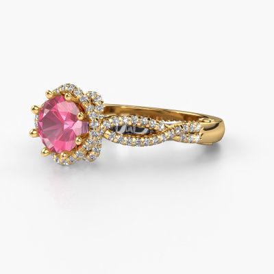 This 14 Carat gold ring is called Lysanne and is set with 6.5 mm pink sapphire. This filigree gold engagement ring is a true work of art! A beautifully adorned design of intricate wires. With dedication, patience and the utmost precision, our expert goldsmith will design a ring just for you. The adornment of small wiring is crafted to perfection by hand. It's a lengthy process which includes welding, crafting and polishing until our Goldsmiths are completely satisfied with the result: a perfect eye-catching ring that makes her shine with delight. Therefore the vintage filigree engagement ring is an extraordinary gift to bestow upon the love of your life. A handmade one-of-a-kind personalized ring, to be given to that special someone on that special moment when you pop the question. Isn't that wonderful? This piece of jewellery is made by a team of passionate goldsmiths and jewel designers. This will make your crown jewel truly eye-catching.After receiving your order, our goldsmiths will start the creative process of making your Lysanne engagement ring. We don't keep stock. This is advantageous because these costs will not be passed on to you. Therefore, we can offer jewellery at exceptionally low prices.Have you found a specific engagement ring somewhere which you would like to give to your loved one? Please feel free to express your wishes to our jewel designers because we would be honoured to turn your design into a vintage engagement ring. You can follow the development of your ring design because we use 3D drawings. This gives you a realistic preview of how your design will look. You can also preorder a dummy. A dummy is a plastic ring, which can be shaped according your ring design. You can try it on and check if its width and size are suitable for you. We will gladly send you a non-binding offer, based on a fair price/ quality ratio. It will amaze you, considering the quality of the ring and gemstones.To make it easier for you, we offer a 30 day return policy. Check our terms and conditions.