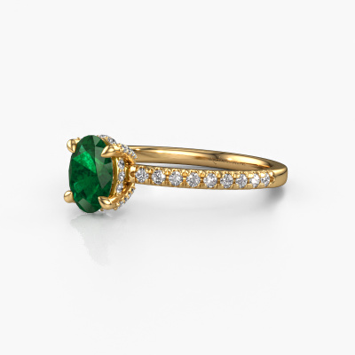 This 14 Carat gold ring is called Saskia 1 ovl and is set with 7x5 mm emerald. Does your girlfriend fancy exclusive jewellery? Or would you like to show her that she deserves the finest jewellery? This gold ring is pure craftsmanship, love and passion combined with the latest techniques coming together in perfect harmony. It requires a keen eye, patience and a skilful hand to mould this ring into perfection. Just the job for our expert goldsmith! The emerald set gemstones gives this gold ring an extra glamorous appearance. Customize the style of the daring engagement ring to her liking with a wide variety of precious metals and gemstones which you select. That is how you create a unique ring for the most exclusive woman in your life! This jewel is made by a team of passionate goldsmiths and jewel designers. This will make your crown jewel truly eye-catching.After receiving your order, our goldsmiths will passionately start the creative process of making your engagement ring in our own studio. Because we don't have a big stockpile, these costs will not be passed on to you. Our pricing is proof of that! We offer top quality jewels at lowest price, guaranteed.Different styles of new rings are made daily by our team. Perhaps you have found a pavé solitaire engagement ring somewhere. One you would like to give to your loved one. Please feel free to share your thoughts and design with our jewel designers. We would love to turn your design into a luxury engagement ring. You can follow the development of your ring design because we use very detailed 3D drawings. On top of that, you can order a dummy of the design. A dummy is a plastic ring, which can be shaped according your ring design. You can try it on and check if the engagement ring is up to standard. We will gladly send you a non-binding offer, based on a fair price/ quality ratio. The offer will baffle you, considering the quality of the ring and gemstones.To make it easier for you, we offer a 30 day return policy. Check our terms and conditions.
