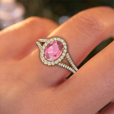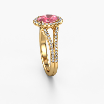 This 14 Carat gold ring is called Verla ovl 2 and is set with 8x6 mm tourmaline pink. Does your girlfriend fancy exclusive jewellery? Or would you like to show her that she deserves the finest jewellery? This gold ring is pure craftsmanship, love and passion combined with the latest techniques coming together in perfect harmony. It requires a keen eye, patience and a skilful hand to mould this ring into perfection. Just the job for our expert goldsmith! The tourmaline pink set gemstones gives this gold ring an extra glamorous appearance. Customize the style of the split band engagement ring to her liking with a wide variety of precious metals and gemstones which you select. That is how you create a unique ring for the most exclusive woman in your life! This jewel is made by a team of passionate goldsmiths and jewel designers. This will make your crown jewel truly eye-catching.By using our modern techniques, we can design and customize the finest quality jewels with the utmost care for you. Our engagement rings are always priced 30 percent lower than other jewellers. We make engagement rings to order so we don't have to maintain a large stock. If you have a certain budget, we are more than happy to advice you accordingly.Our team adds new designs to our online collection daily. Our designers and goldsmiths work together in creating the best design. We strive to offer a diverse collection of jewels. Perhaps you have a specific jewel design in mind. One you came across somewhere. Please contact us for a free consultation. We will make you an offer, based on a fair price/ quality ratio, that will baffle you.To make it easier for you, we offer a 30 day return policy. Check our terms and conditions.