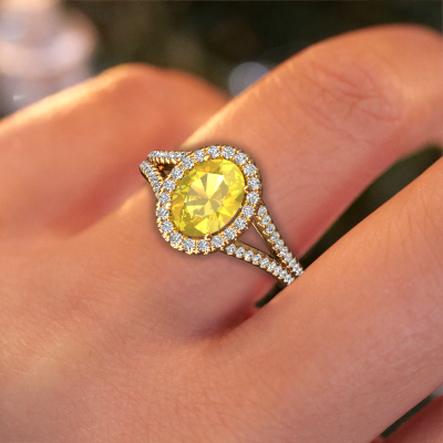 This 14 Carat gold ring is called Verla ovl 2 and is set with 8x6 mm yellow sapphire. Does your girlfriend fancy exclusive jewellery? Or would you like to show her that she deserves the finest jewellery? This gold ring is pure craftsmanship, love and passion combined with the latest techniques coming together in perfect harmony. It requires a keen eye, patience and a skilful hand to mould this ring into perfection. Just the job for our expert goldsmith! The yellow sapphire set gemstones gives this gold ring an extra glamorous appearance. Customize the style of the split band engagement ring to her liking with a wide variety of precious metals and gemstones which you select. That is how you create a unique ring for the most exclusive woman in your life! This jewel is made by a team of passionate goldsmiths and jewel designers. This will make your crown jewel truly eye-catching.By using our modern techniques, we can design and customize the finest quality jewels with the utmost care for you. Our engagement rings are always priced 30 percent lower than other jewellers. We make engagement rings to order so we don't have to maintain a large stock. If you have a certain budget, we are more than happy to advice you accordingly.Our team adds new designs to our online collection daily. Our designers and goldsmiths work together in creating the best design. We strive to offer a diverse collection of jewels. Perhaps you have a specific jewel design in mind. One you came across somewhere. Please contact us for a free consultation. We will make you an offer, based on a fair price/ quality ratio, that will baffle you.To make it easier for you, we offer a 30 day return policy. Check our terms and conditions.