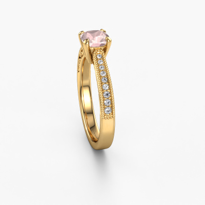 This 14 Carat gold ring is called Shonta CUS and is set with 5.5 mm morganite champagne. This filigree gold engagement ring is a true work of art! A beautifully adorned design of intricate wires. With dedication, patience and the utmost precision, our expert goldsmith will design a ring just for you. The adornment of small wiring is crafted to perfection by hand. It's a lengthy process which includes welding, crafting and polishing until our Goldsmiths are completely satisfied with the result: a perfect eye-catching ring that makes her shine with delight. Therefore the vintage filigree engagement ring is an extraordinary gift to bestow upon the love of your life. A handmade one-of-a-kind personalized ring, to be given to that special someone on that special moment when you pop the question. Isn't that wonderful? This piece of jewellery is created to add sparkle to your finger, each jewel is lovingly made by hand by our goldsmiths.After receiving your order, our goldsmiths will start the creative process of making your Shonta CUS engagement ring. We don't keep stock. This is advantageous because these costs will not be passed on to you. Therefore, we can offer jewellery at exceptionally low prices.Our designers and goldsmiths work together each day, creating new jewels. Perhaps you have found a nice vintage engagement ring somewhere, which can be used to customize your unique ring. Please feel free to contact us. We will make you an offer, based on a fair price/ quality ratio, which will amaze you.To make it easier for you, we offer a 30 day return policy. Check our terms and conditions.