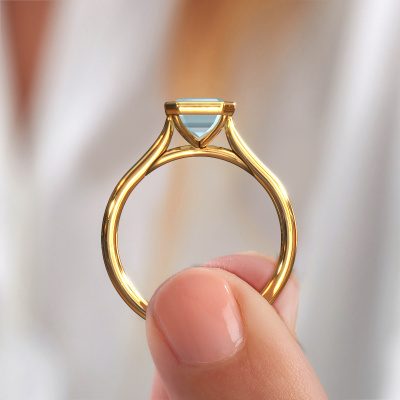 This 14 Carat gold ring is called Lavon EME and is set with aquamarine. Are you in the market for a unique gold engagement ring with a trendy appearance? Then this ring is perfect for you. Simply customize to your or her liking. This trendy fashionable engagement ring is set with exquisite aquamarine. It has been carefully selected because your engagement ring must be adorned with nothing but the most beautiful gemstone. Our expert goldsmith will create your ring in our own studio where the aquamarine will be set with great care. The ring will then be polished to perfection to give it that extra sparkle. The perfect ring for your significant other! After receiving your order, our goldsmiths will start the creative process of making your Lavon EME engagement ring. We don't keep stock. This is advantageous because these costs will not be passed on to you. Therefore, we can offer jewellery at exceptionally low prices.Our team adds new designs to our online collection daily. Our designers and goldsmiths work together in creating the best design. We strive to offer a diverse collection of jewels. Perhaps you have a specific jewel design in mind. One you came across somewhere. Please contact us for a free consultation. We will make you an offer, based on a fair price/ quality ratio, that will baffle you.To make it easier for you, we offer a 30 day return policy. Check our terms and conditions.